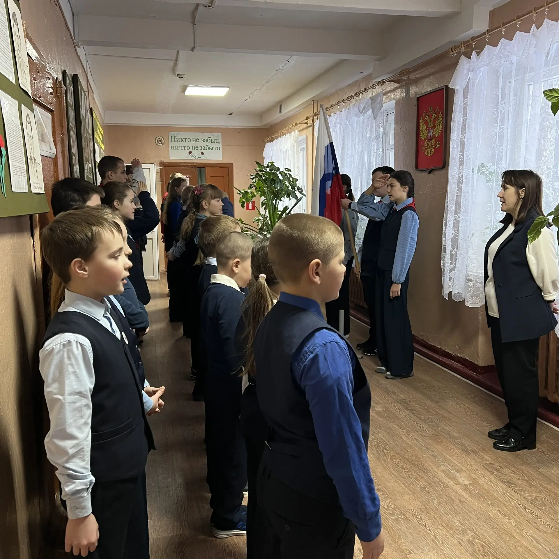 2 февраля состоялась Торжественная линейка посявщенная открытию месячника патриотического воспитания! Ребята в торжественной обстановке спели гимн, вынесли флаг РФ. Советник директора познакомила ребят с планом мероприятий месячника, с которым можно познакомится по ссылке