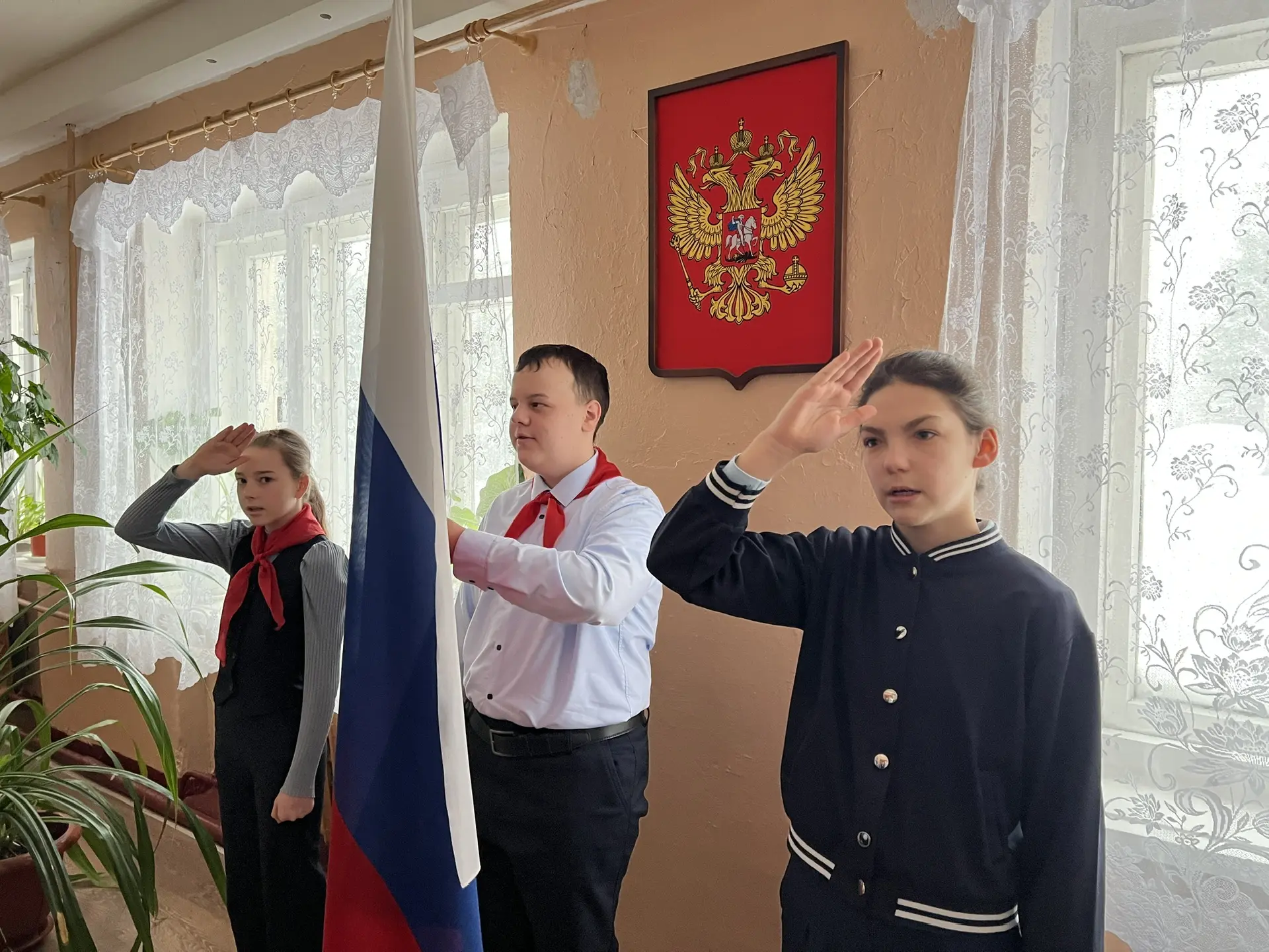 Сегодня в нашей школе перед началом учебных занятий состоялась традиционная торжественная линейка, посвящённая выносу Государственного флага Российской Федерации 🇷🇺. Почётное право внести Государственный флаг РФ было предоставлено активистам школы - Лепилину Максиму, Серпилиной Екатерине и Дрогайцевой Валерии.